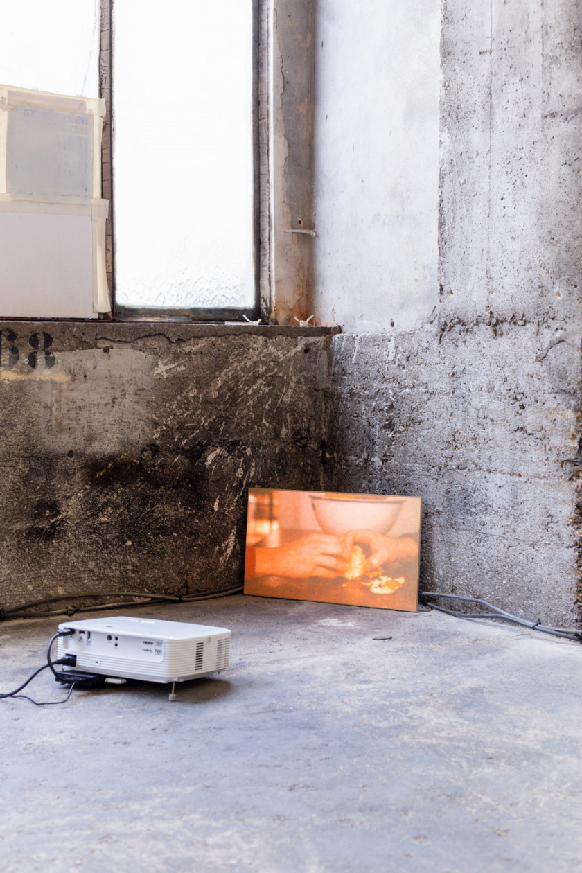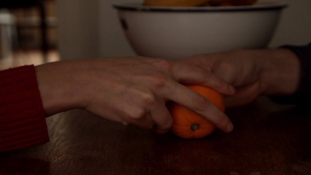 At OFFSCREEN, Alex Reynolds presents “Peel” (2022), a video installation.Two hands belonging to different bodies negotiate their movements in the almost erotic act of peeling an orange. In a fixed shot that refers to the conventions of baroque still life, this eminently tactile footage captures the conversation between the fingers and the pulpy body they peel. Reynolds’ artistic practice revolves around a constant exploration of our modes of relating and affection through multiple registers and formats, especially in the way as these are manifested through the language of film.