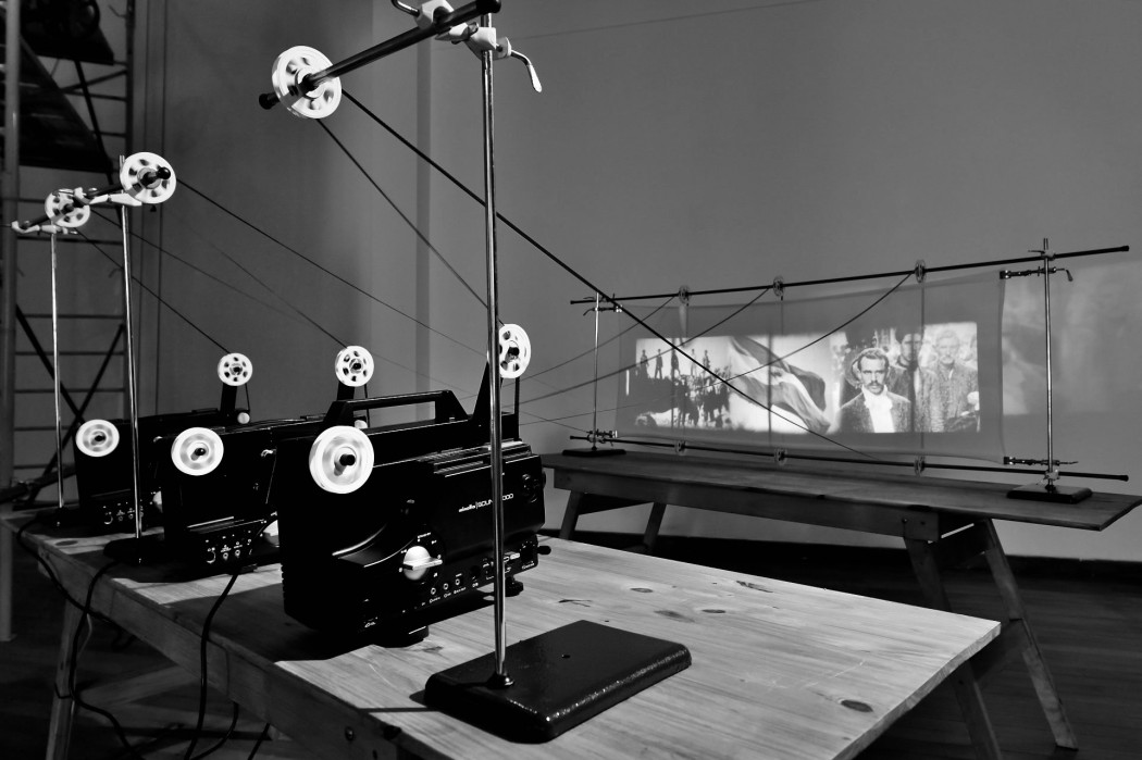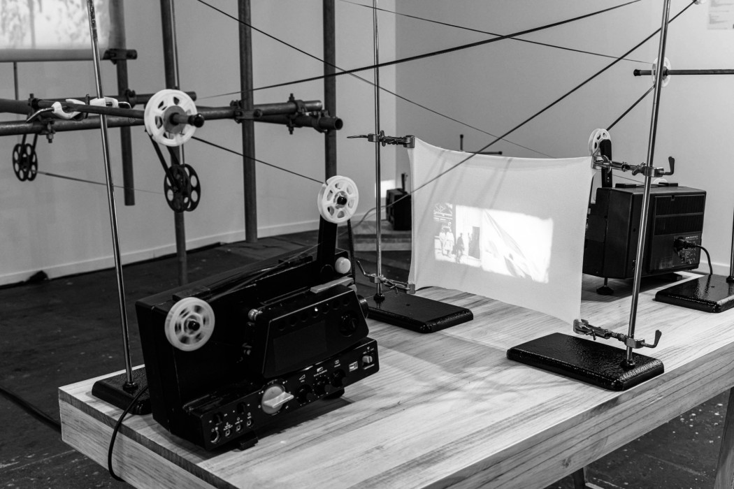 At OFFSCREEN, Andrés Denegri presents “Clamor” (Uproar) (2012-2024), a site-specific film installation bringing together different works from the series “We Were Expected” (2012- ongoing) in an unprecedented way. The work revolves around the origins of cinema associated with the modernist economical project of the Industrial Revolution, of which cinema was both proof and apology. Lumière brothers projections and early Argentinian films interact within a scaffolding machinery, expanding the film, while screens are testimony of a work in progress, evoking Argentina’s failed industrialization process. The works bring together film strips, projectors — ranging from powerful 35mm cinema machines to the fragility of a Super 8 projector, spotlights, shadows, and film bearings. Combined with the environmental sound of the functioning pieces the artwork is an operating machine.