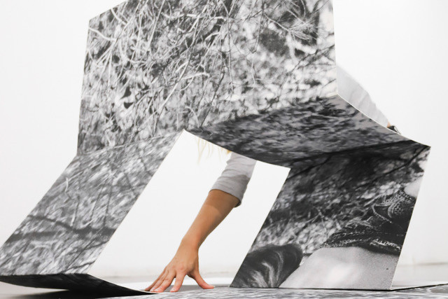 Fold is an installation made up of two double-sided photographic prints, reworked by a series of incisions and folds.