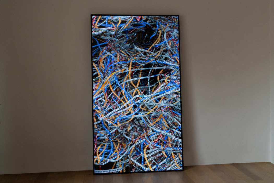 “Chyron” overlays international news chyrons, creating a chaotic fabric representing the ecosystem of conflicting information. Daniel Canogar’s series “Surge” explores how the world of data negotiates its relation- ship with the physical world. The project emerges from the artist’s preoccupation with the intangible – and invisible - nature of one of the main driving forces of our economy and society: the data-sphere. This “crisis of visibility” makes it very difficult for most of the population to comprehend how big data is impacting their lives. To materialize the world of data is an attempt to help us cognitively incorporate this new reality.