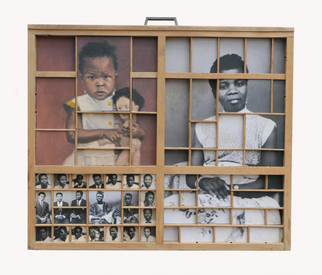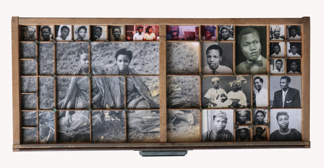 Kelani Abass explores the material heritage and the archive as a link between past and present. In his three-dimensional works “Casting History, Unfolding Layers” (2024), the artist uses vintage portrait photographs – both original prints and painted reproductions – which he retrieves from the archives of his father’s publishing business. Metal typeface and other elements from the printing world are added to these compositions to bring to light fragile and personal testimonies from Nigeria’s independence era. In Stamping History, Making Time (2016), he recreates the image by repeated imprints applied with an ink pad. In the artist’s study of the “manufactured” nature of the image, he explores its essential function as a support for memory - a fragmentary and multiple memory, rewritten and reassembled by the artist’s hands.