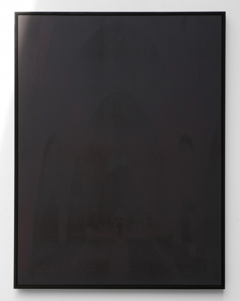 Laurence Aëgerter’s works combine appropriation, translation and poetic displacement to question the signifying power of images that unconsciously precede, follow, surround and overtake us. She investigates our realities through the prism of the human sciences, history, art history, psychology, neurology, and iconography. “Les Cathédrales” series (2014) is based on a book from the 1950s, Cathédrales et églises de France. The artist photographs one of the included images of the Gothic cathedral of Bourges in her studio through a precise protocol: every minute for two hours, Aëgerter captures the movement of the sun and the shadows cast by the windows, gradually obscuring the image until it becomes invisible. The series of 126 shots, also published as an artist’s book, engages the viewer in an exercise of contemplation and patience. “Les Cathédrales hermétiques” (2016-19) builds on the series. Aëgerter focuses on interiors, from the Romanesque cathedral of Saint-Benoît-sur-Loire to the Gothic cathedral of Coutances, to the more modern Sainte-Jeanne-d’Arc in Nice and the three Provençal sisters of Cistercian architecture: Sénanque, Silcacane and Le Thoronet. Printed and silk-screened with a thermo-reactive ink, the images are revealed in contact with the sun’s rays. The heat penetrates the material to better reveal it: the darkroom exists in broad daylight. In this tribute to Claude Monet’s majestic Cathedrals series, whose thirty motifs painted between 1892 and 1893 offer a highly plastic experience of light, Aëgerter draws on the history of art and architecture, as well as that of photographic technique. The perception of time is apprehended through a living experience of light and matter, where the fleetingness of the present moment confronts the immutability of the past.