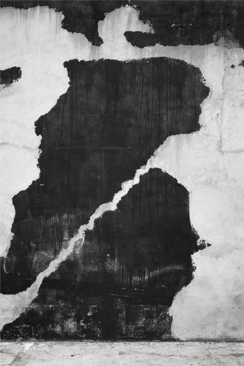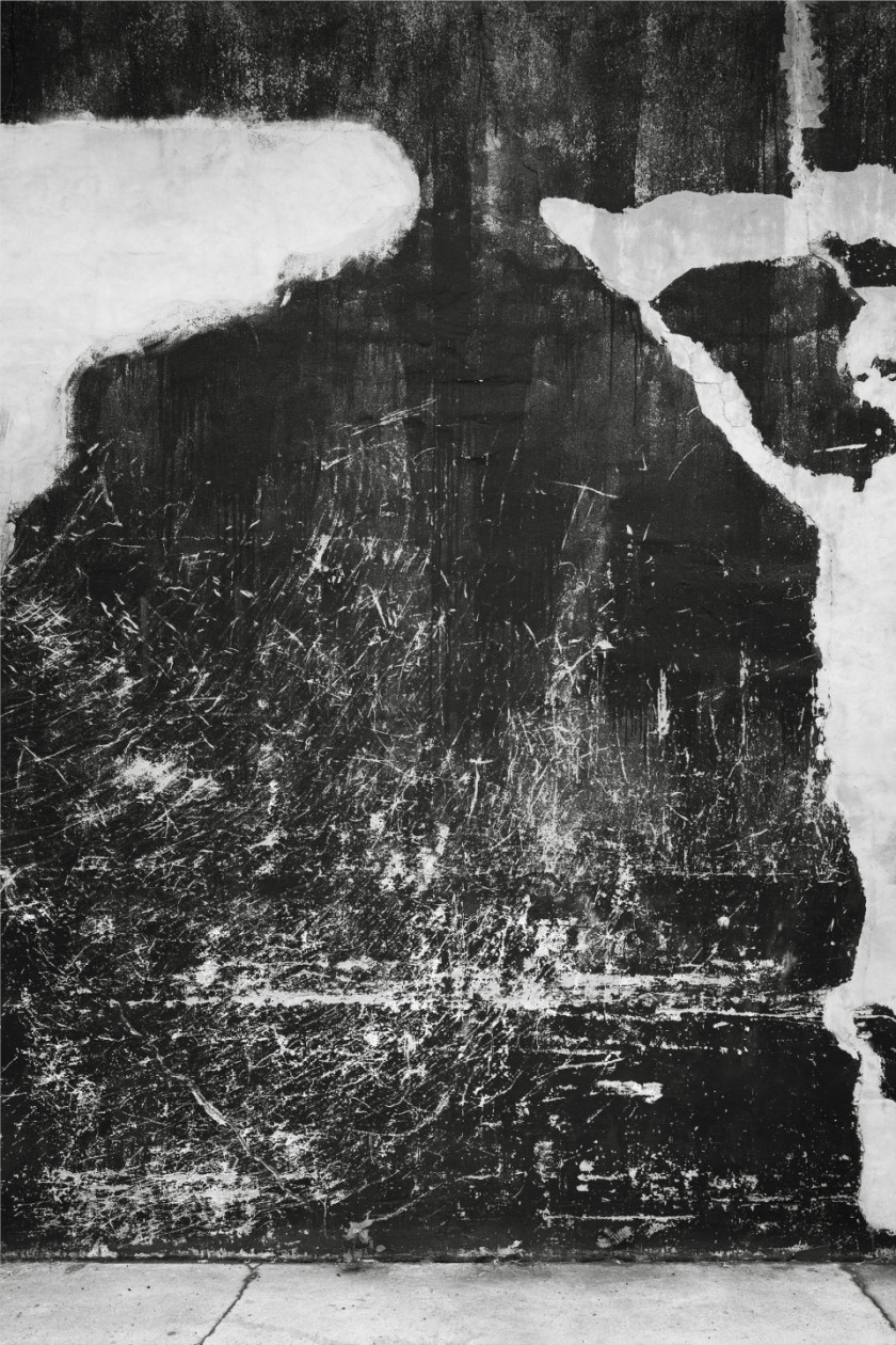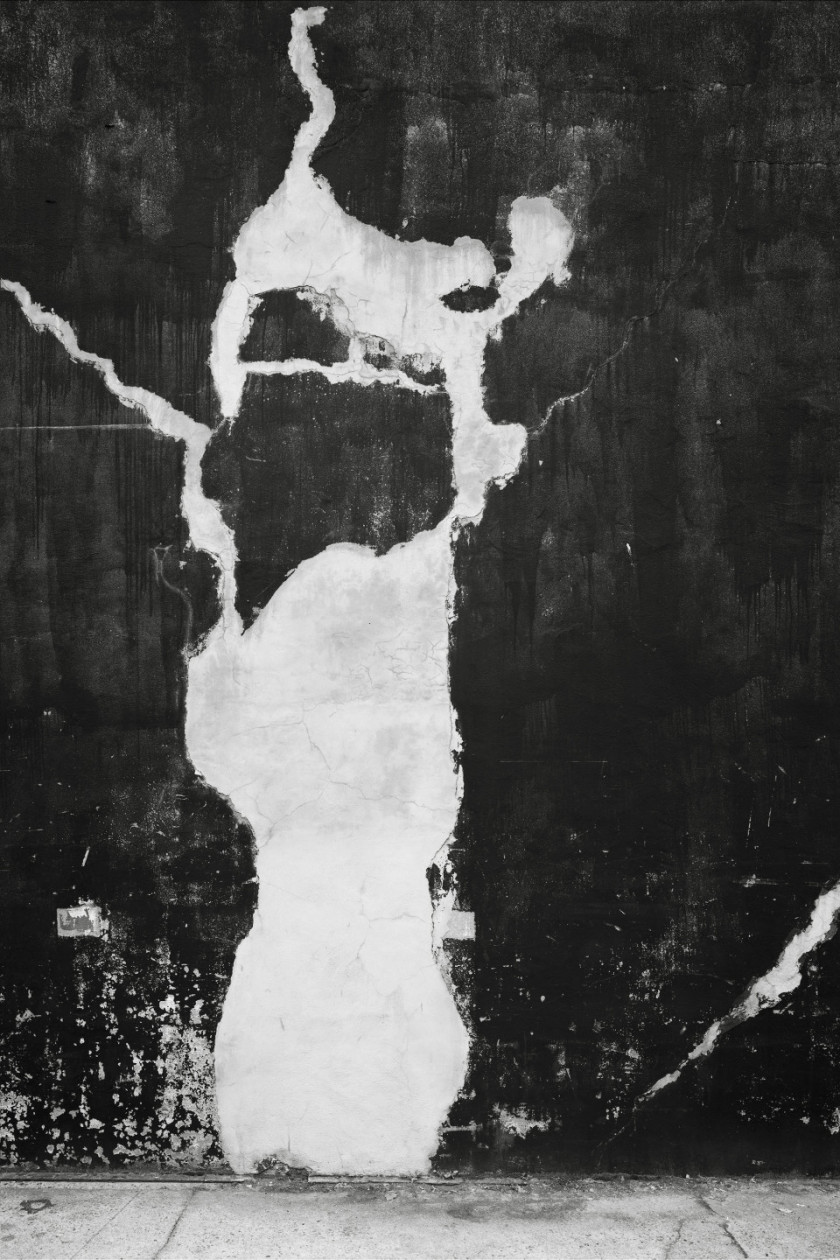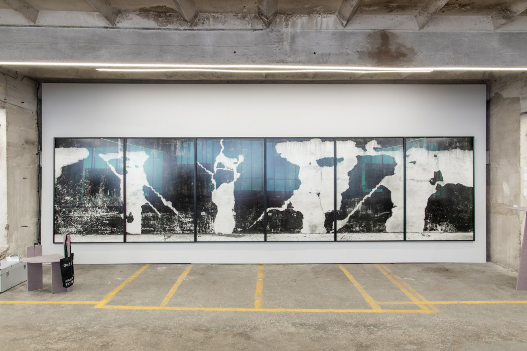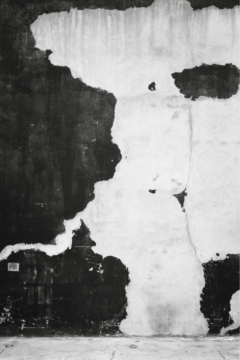 Lukas Hoffmann’s polyptych titled “Bronx River Avenue” (2016), an assemblage of six large panels measuring a total of 181,5 cm by 723 cm, is a walking experience through time, space, and materials. The frontal vantage point immerses the viewer’s gaze directly into the almost tactile image on the surface, causing the subject to fade behind its representation. Exploring textures—what the artist calls the “granular” aspects of an object, person, vegetation, or landscape—is an integral part of his photographic investigations. Capturing the subtleties of change, often barely perceptible yet continuous over time, reveals the magic of unexpected and fleeting moments. Here again, temporality is at the core of Hoffmann’s work; it is also, to his mind, at the core of the medium itself.