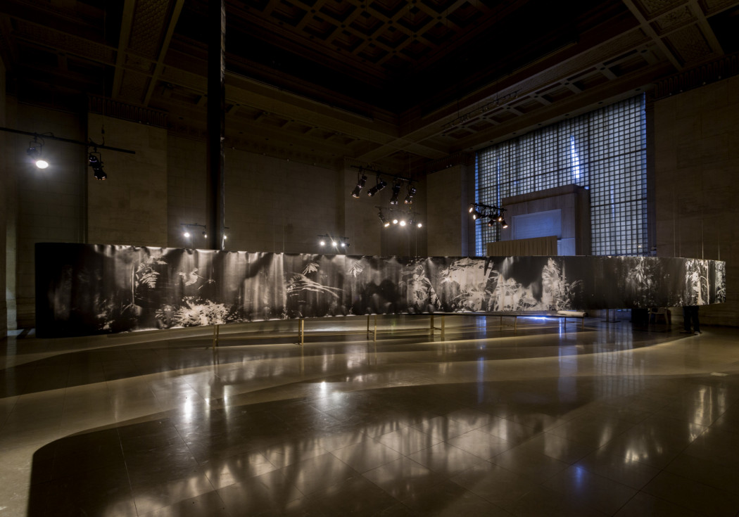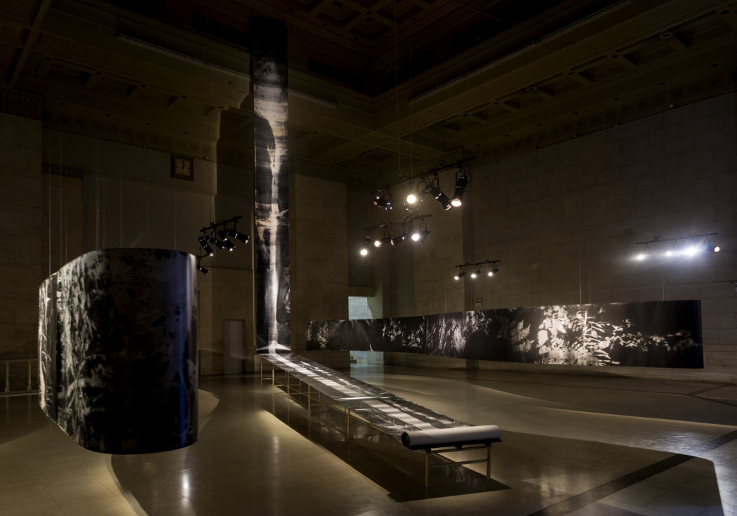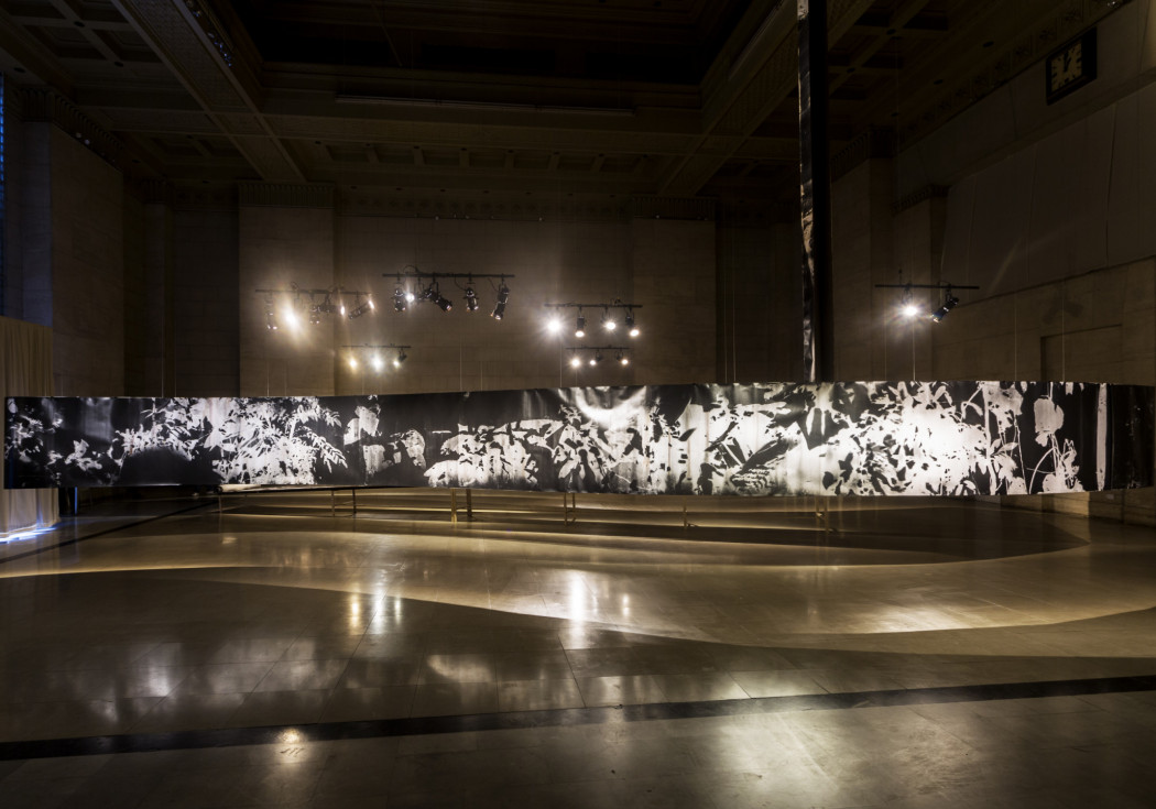 Roberto Huarcaya for OFFSCREEN features a photogram piece from the “Amazogramas” series shot at night in Bahuaja Sonene National Park, in the Peruvian jungle of Tambopata, deploying 30 meters long photosensitive paper between the dense foliage, which is printed directly to paper with a small flash light and full moon.