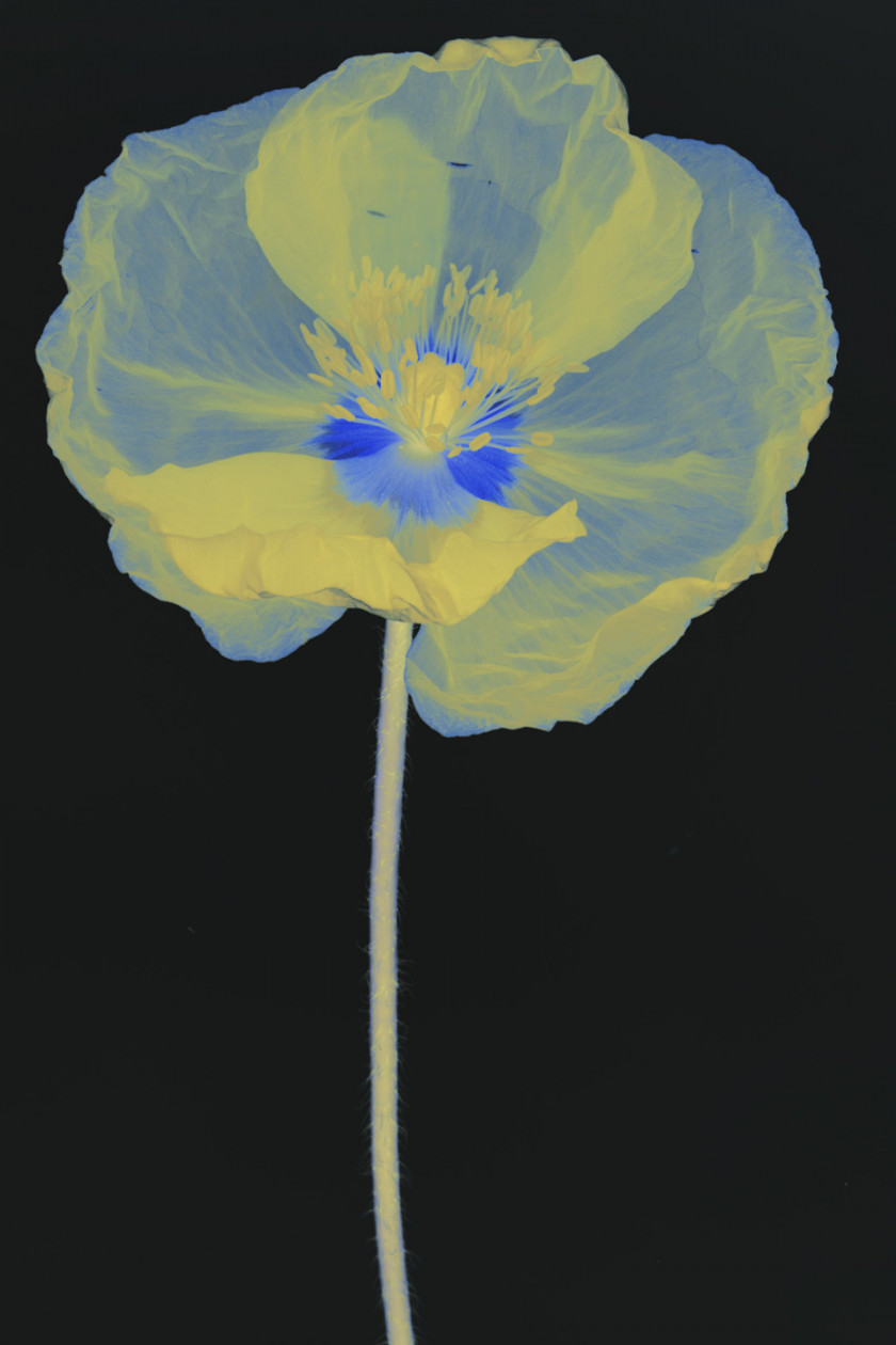 Suzanne Lafont New Companion Species is a series of 16 fascinating photographs each representing a plant collected, recorded and photographed between 2018-2019 in the streets of Bordeaux in south-west France. Lafont reworked the chromatisme by replacing certain colors by their complements, on a charcoal gray background. This lag of the chromatic spectrum, inverting values warm and cold on a dark background, produces a particular bewitching luminescence. This light dazzles and brings the eye to produce an afterimage, opposing values that are juxtaposed to the observed values, as described by Goethe in his Treatise on Colors. “Dazzling is Night in Broad Daylight”, also says Michel Foucault in the History of Madness. This blurring of human vision evokes the disorganization of the vegetal world in our environment in a saturated atmosphere altered by Man, which has become “an unbreathable garden”.